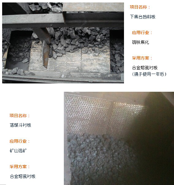 根據不同工況條件,選用不同鑄造基材,熔瓷襯板可在1000℃以內的工況下正常使用,滿足大多數用戶的設備運行條件;